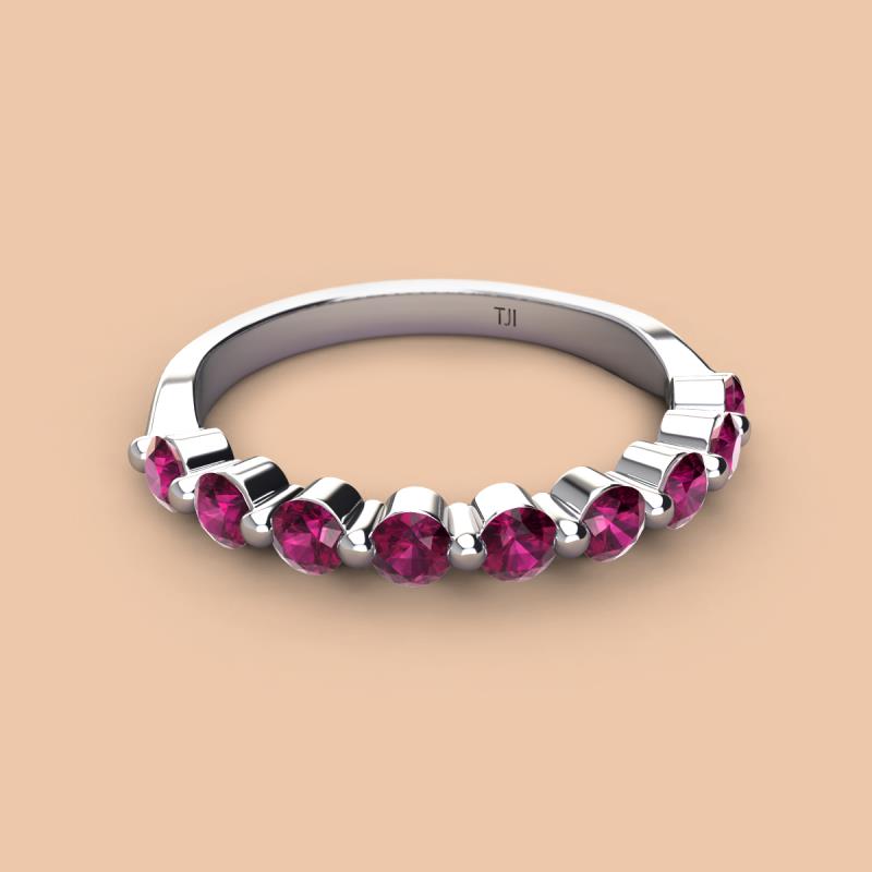 Round Rhodolite Garnet 1.04 ctw 9 Stone Women Wedding Band Stackable 10K White Gold More Details ...