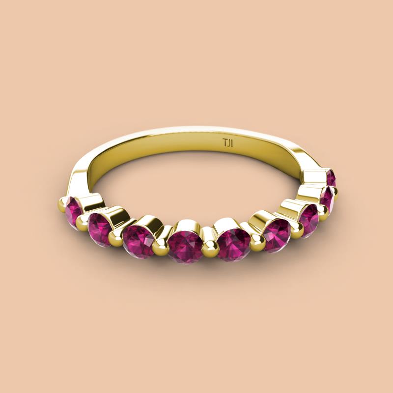 Round Rhodolite Garnet 1.04 ctw 9 Stone Women Wedding Band Stackable 10K Yellow Gold More Details ...
