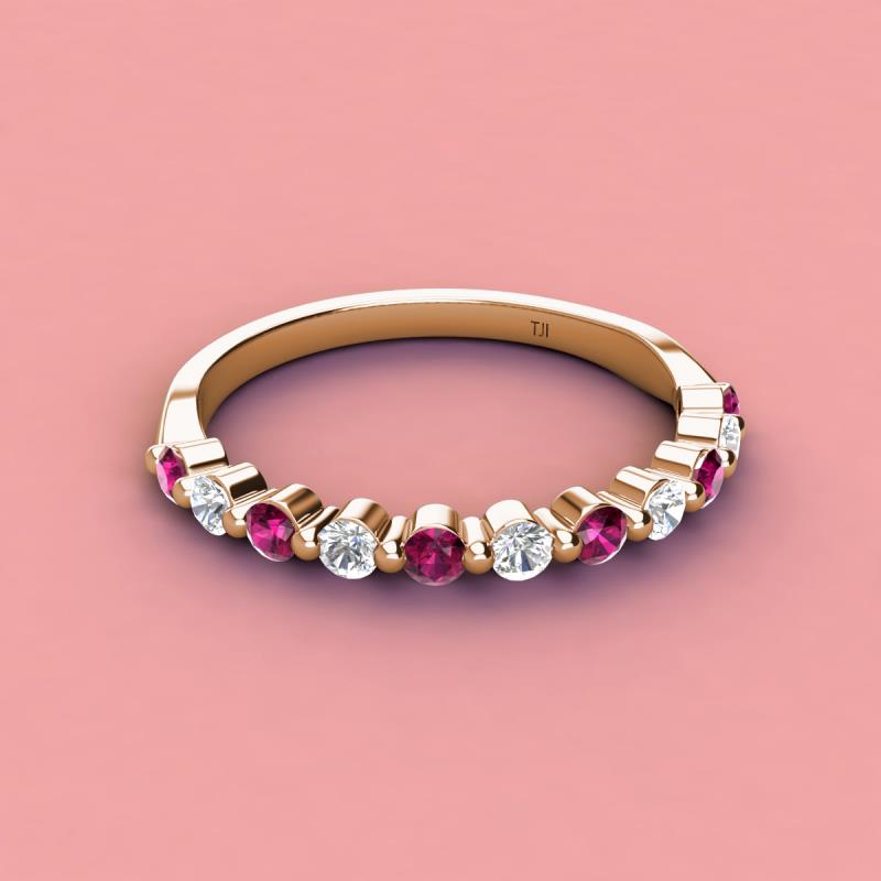 A Jewelry is a way of keeping memories alive. Do it with this Dazzling 11 Stone Wedding Band with a series of Round Sparkling Rhodolite Garnet and Diamond delicately crafted in Shared-Prong setting.The perfect match to your engagement ring, or you can wear it stand alone.