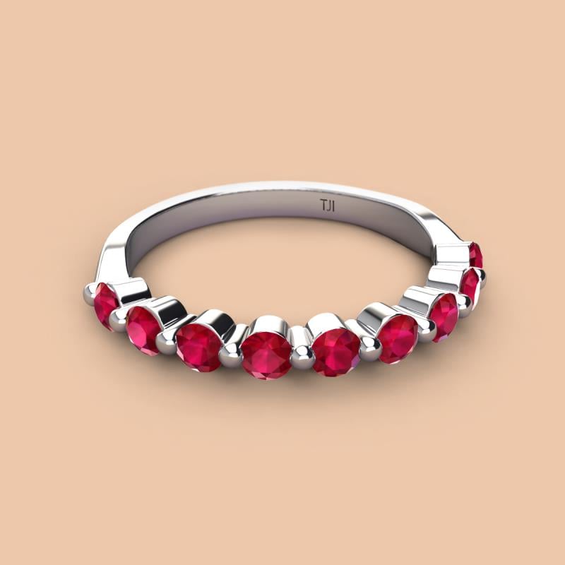A Jewelry is a way of keeping memories alive. Do it with this Dazzling 9 Round Sparkling Ruby Wedding Band delicately crafted in Shared-Prong setting.The perfect match to your engagement ring, or you can wear it stand alone.