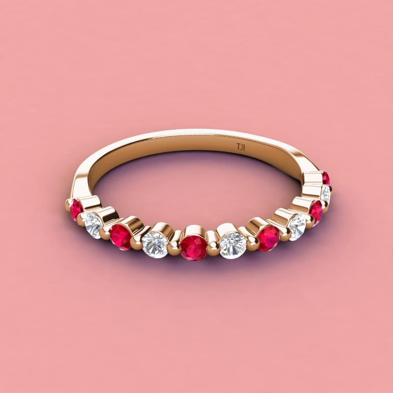 A Jewelry is a way of keeping memories alive. Do it with this Dazzling 11 Stone Wedding Band with a series of Round Sparkling Ruby and Lab Grown Diamond delicately crafted in Shared-Prong setting.The perfect match to your engagement ring, or you can wear it stand alone.