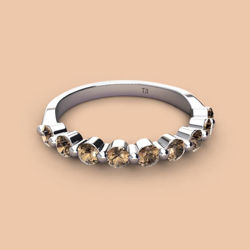 Round Smoky Quartz 0.90 ctw 9 Stone Women Wedding Band Stackable 10K White Gold More Details ...
