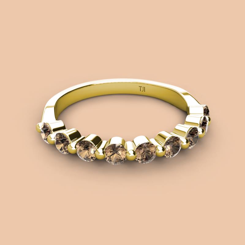 Round Smoky Quartz 0.90 ctw 9 Stone Women Wedding Band Stackable 10K Yellow Gold More Details ...