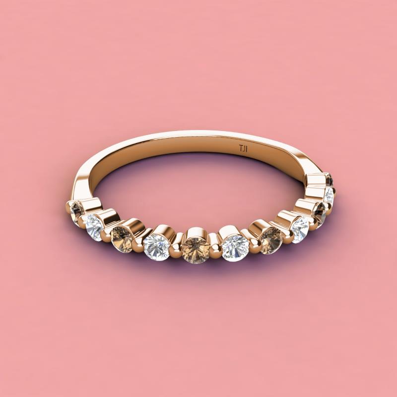 Round Smoky Quartz and Diamond 0.65 ctw 11 Stone Women Wedding Band Stackable 10K Rose Gold More Details ...