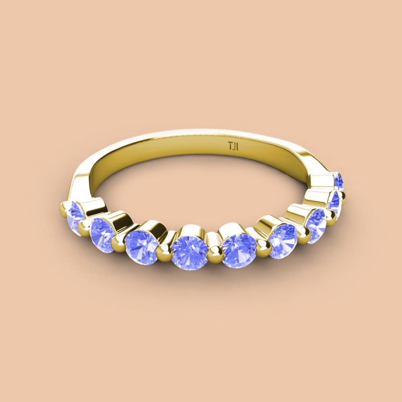 Round Tanzanite 0.81 ctw 9 Stone Women Wedding Band Stackable 10K Yellow Gold More Details ...