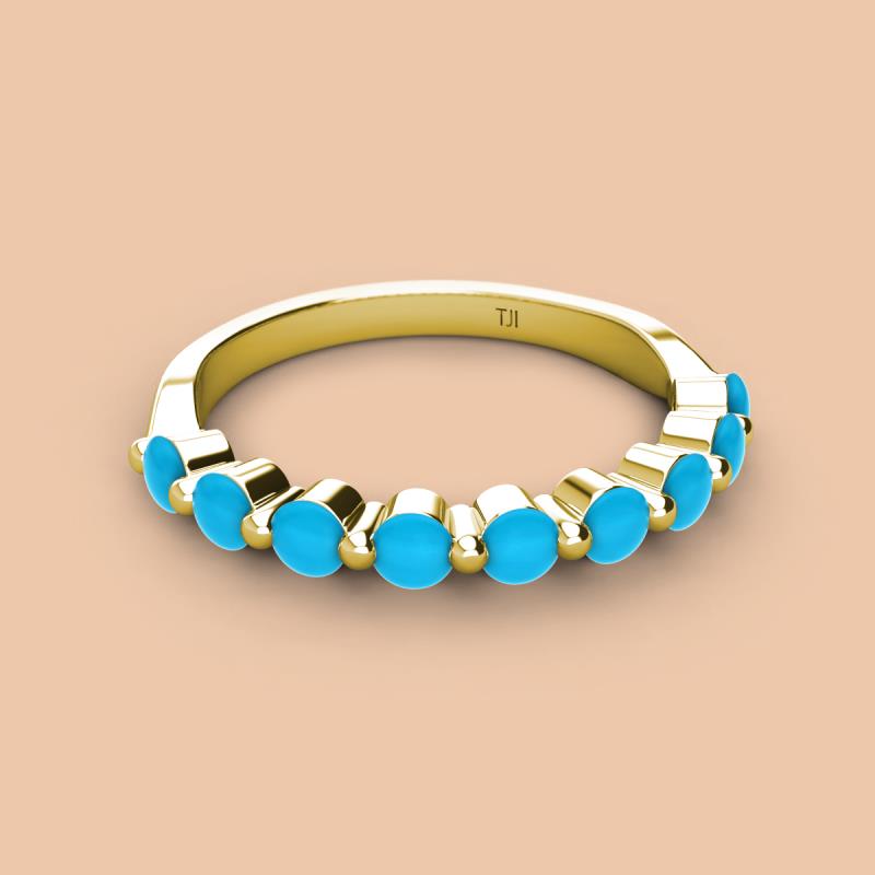Round Turquoise 0.63 ctw 9 Stone Women Wedding Band Stackable 10K Yellow Gold More Details ...