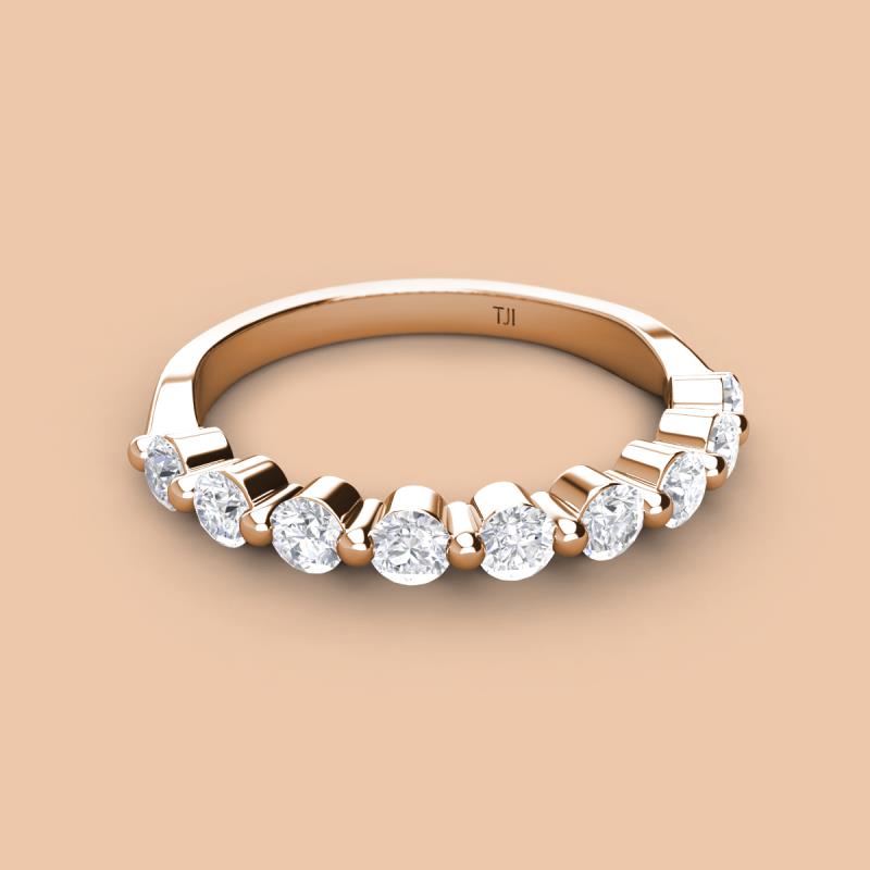 A Jewelry is a way of keeping memories alive. Do it with this Dazzling 9 Round Sparkling White Sapphire Wedding Band delicately crafted in Shared-Prong setting.The perfect match to your engagement ring, or you can wear it stand alone.