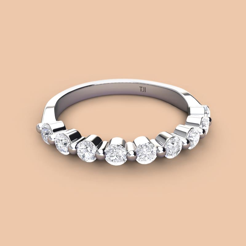 A Jewelry is a way of keeping memories alive. Do it with this Dazzling 9 Round Sparkling White Sapphire Wedding Band delicately crafted in Shared-Prong setting.The perfect match to your engagement ring, or you can wear it stand alone.