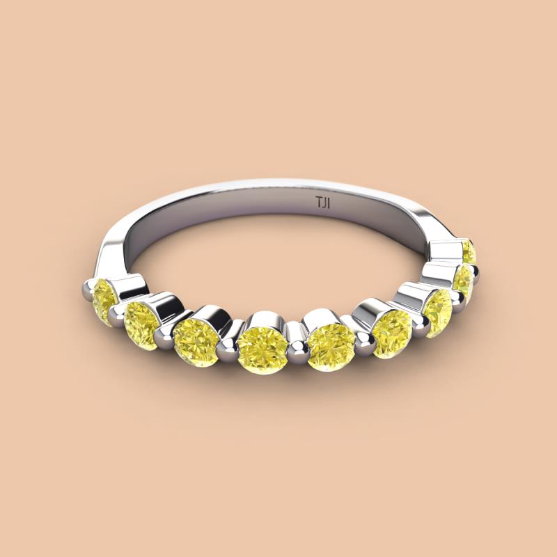 A Jewelry is a way of keeping memories alive. Do it with this Dazzling 9 Round Sparkling Yellow Diamond Wedding Band delicately crafted in Shared-Prong setting.The perfect match to your engagement ring, or you can wear it stand alone.
