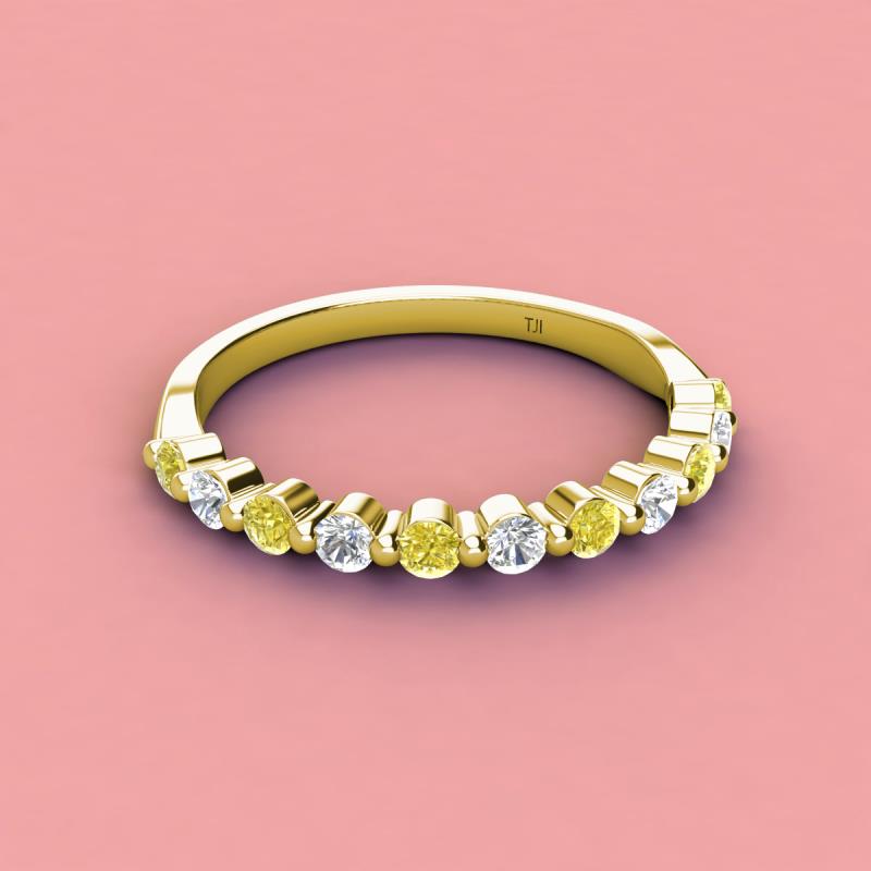 A Jewelry is a way of keeping memories alive. Do it with this Dazzling 11 Stone Wedding Band with a series of Round Sparkling Yellow Diamond and Lab Grown Diamond delicately crafted in Shared-Prong setting.The perfect match to your engagement ring, or you can wear it stand alone.