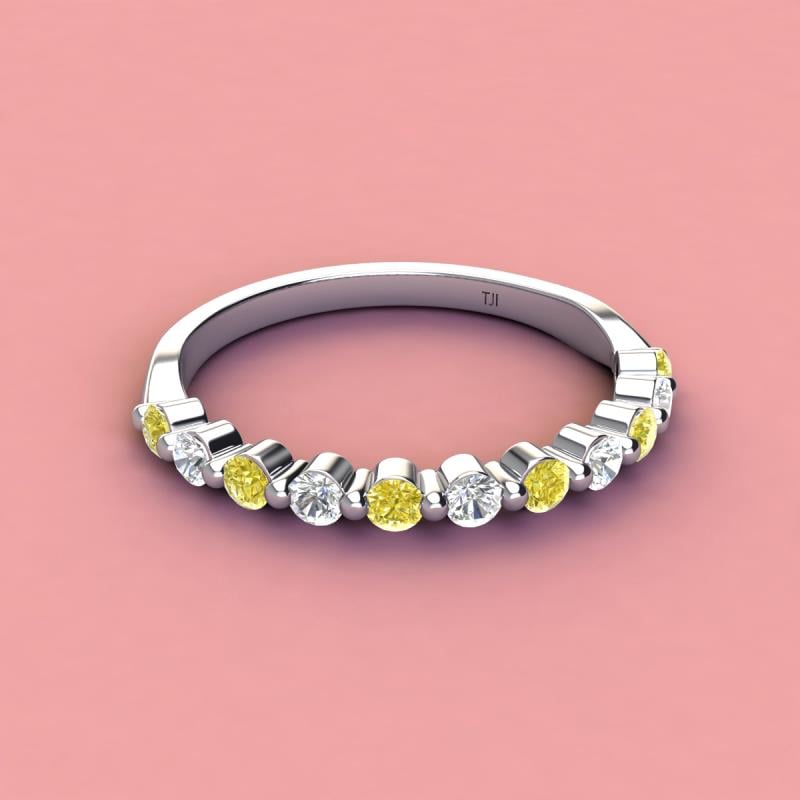 A Jewelry is a way of keeping memories alive. Do it with this Dazzling 11 Stone Wedding Band with a series of Round Sparkling Yellow Diamond and Lab Grown Diamond delicately crafted in Shared-Prong setting.The perfect match to your engagement ring, or you can wear it stand alone.