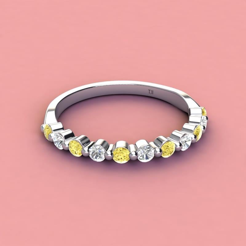 A Jewelry is a way of keeping memories alive. Do it with this Dazzling 11 Stone Wedding Band with a series of Round Sparkling Yellow Sapphire and Lab Grown Diamond delicately crafted in Shared-Prong setting.The perfect match to your engagement ring, or you can wear it stand alone.