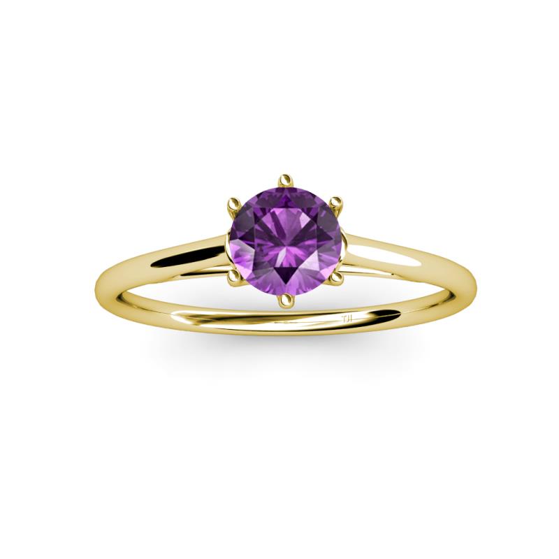 Round (6.50 mm) Amethyst 0.87 ct Six Prong Women Solitaire Engagement Ring 18K Yellow Gold More Details ...
