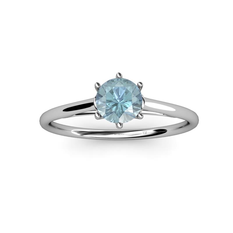 Round (6.50 mm) Aquamarine 0.87 ct Six Prong Women Solitaire Engagement Ring 14K White Gold More Details ...