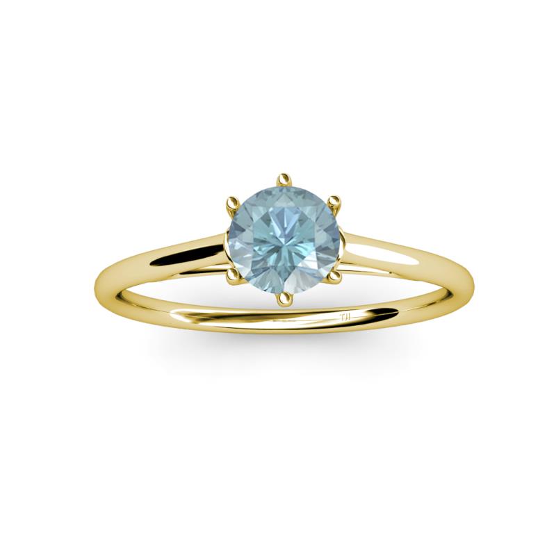 Round (6.50 mm) Aquamarine 0.87 ct Six Prong Women Solitaire Engagement Ring 14K Yellow Gold More Details ...