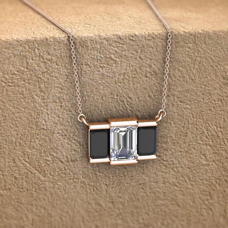 Emerald Shape (6x4 mm) GIA Certified Diamond and Black Diamond 1.20 ctw Womens Three Stone Pendant Necklace 18K Rose Gold.Included 16 Inches 18K Rose Gold Chain. More Details ...