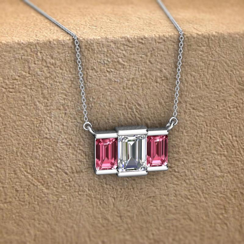 Emerald Shape (6x4 mm) GIA Certified Diamond and Pink Tourmaline 1.20 ctw Womens Three Stone Pendant Necklace 18K White Gold.Included 16 Inches 18K White Gold Chain. More Details ...