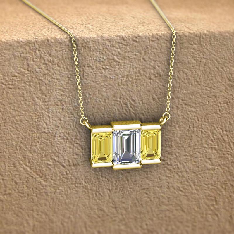 Emerald Shape (6x4 mm) GIA Certified Diamond and Yellow Sapphire 1.30 ctw Womens Three Stone Pendant Necklace 14K Yellow Gold.Included 16 Inches 14K Yellow Gold Chain. More Details ...