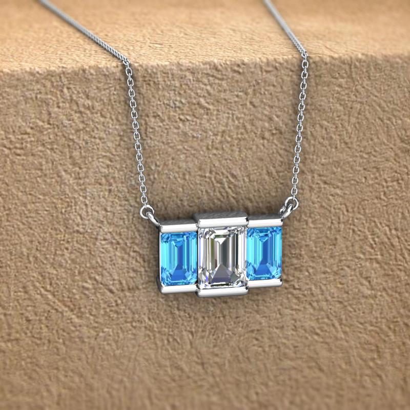 Emerald Shape (6x4 mm) Lab Grown Diamond and Blue Topaz 1.40 ctw Womens Three Stone Pendant Necklace 14K White Gold.Included 16 Inches 14K White Gold Chain. More Details ...