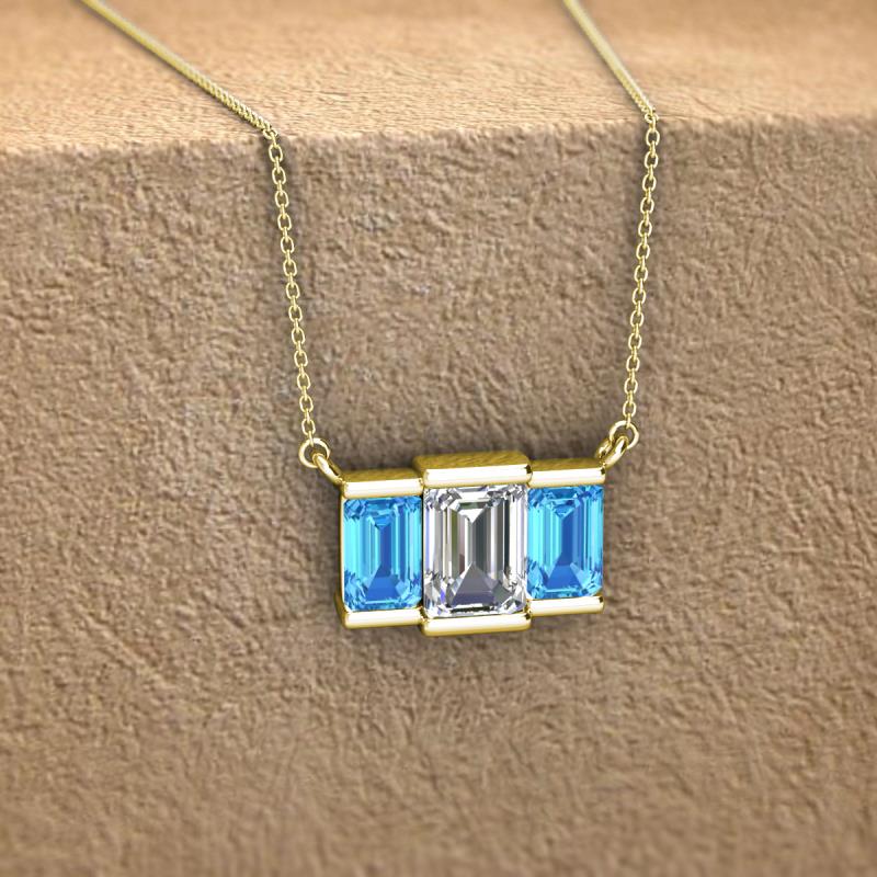 Emerald Shape (6x4 mm) Lab Grown Diamond and Blue Topaz 1.40 ctw Womens Three Stone Pendant Necklace 14K Yellow Gold.Included 16 Inches 14K Yellow Gold Chain. More Details ...