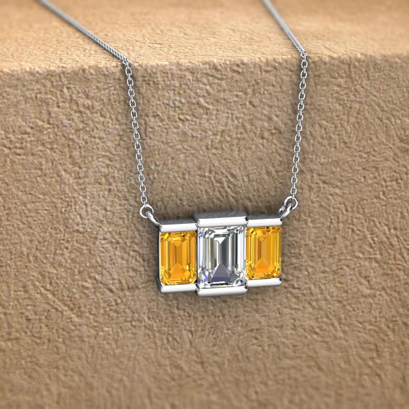 Emerald Shape (6x4 mm) Lab Grown Diamond and Citrine 1.30 ctw Womens Three Stone Pendant Necklace Platinum.Included 16 Inches Platinum Chain. More Details ...