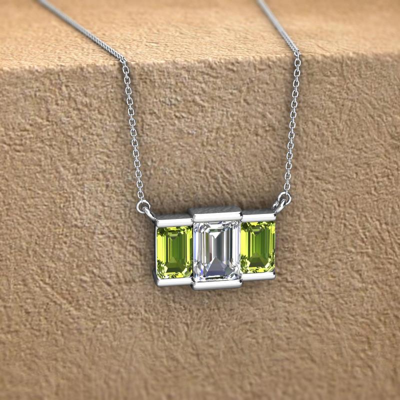 Emerald Shape (6x4 mm) Lab Grown Diamond and Peridot 1.40 ctw Womens Three Stone Pendant Necklace 14K White Gold.Included 16 Inches 14K White Gold Chain. More Details ...