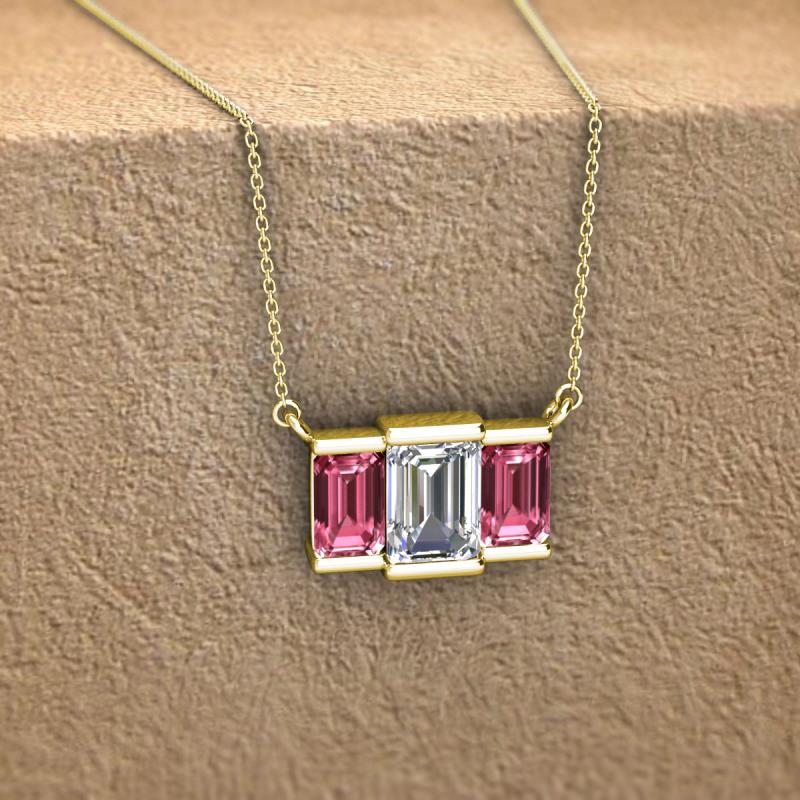 Emerald Shape (6x4 mm) Lab Grown Diamond and Pink Tourmaline 1.40 ctw Womens Three Stone Pendant Necklace 18K Yellow Gold.Included 16 Inches 18K Yellow Gold Chain. More Details ...