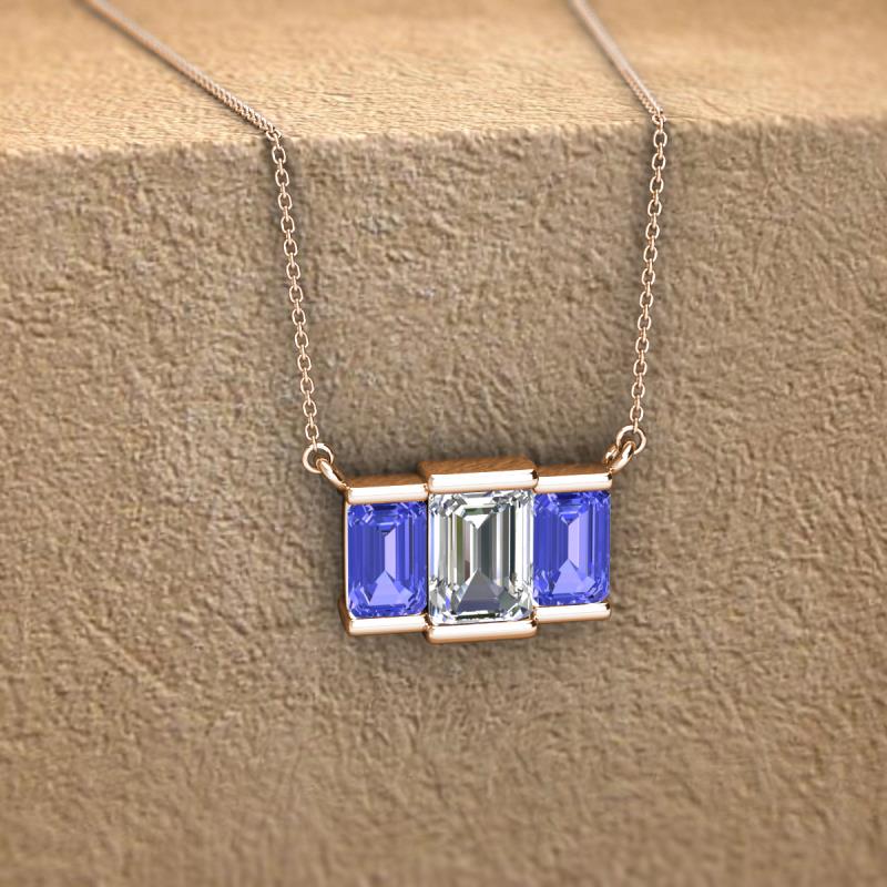 Emerald Shape (6x4 mm) Lab Grown Diamond and Tanzanite 1.40 ctw Womens Three Stone Pendant Necklace 14K Rose Gold.Included 16 Inches 14K Rose Gold Chain. More Details ...