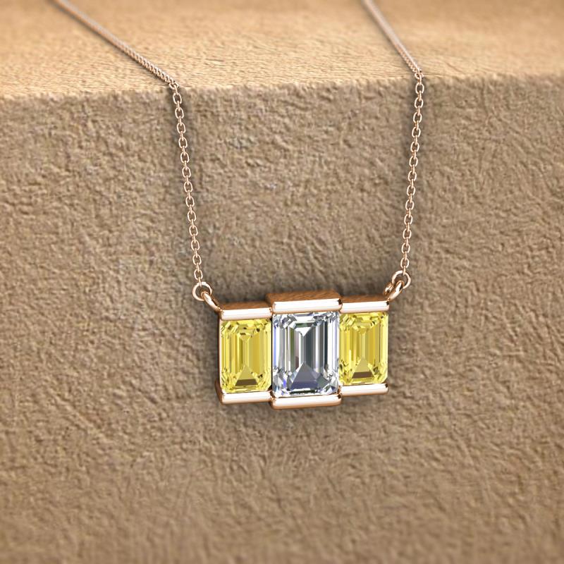 Emerald Shape (6x4 mm) Lab Grown Diamond and Yellow Sapphire 1.50 ctw Womens Three Stone Pendant Necklace 18K Rose Gold.Included 16 Inches 18K Rose Gold Chain. More Details ...