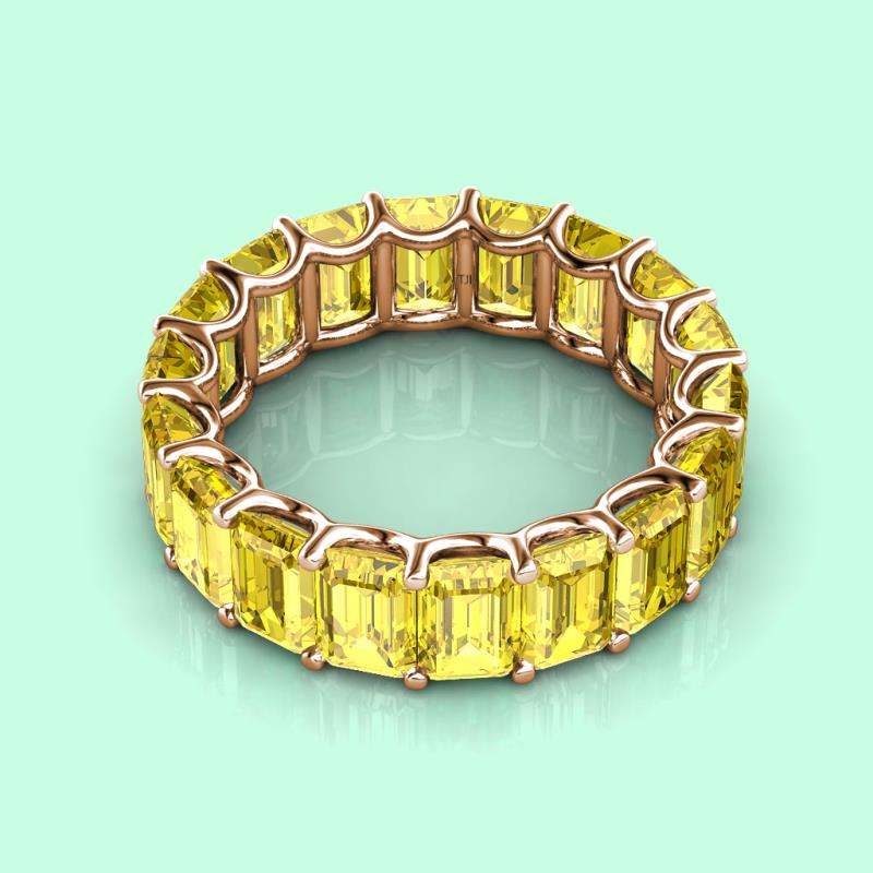 Luxurious combination of Elegance and Beauty, this heirloom quality Eternity Band has Emerald Cut Created Yellow Sapphire that exude sheer brilliance and is highly flattering on the hand.