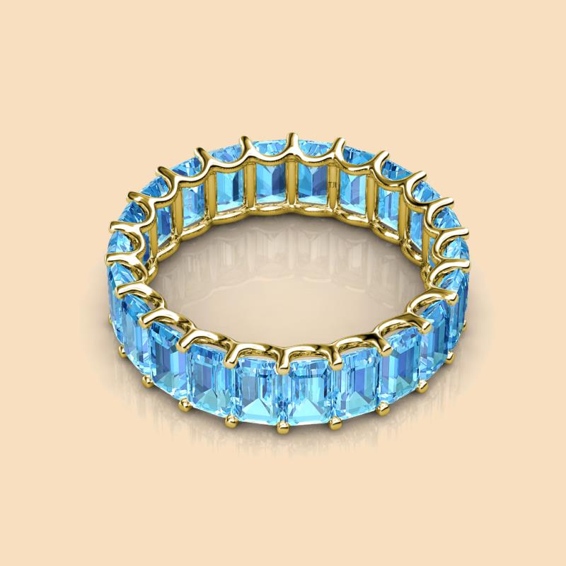Luxurious combination of Elegance and Beauty, this heirloom quality Eternity Band has Emerald Cut Blue Topaz that exude sheer brilliance and is highly flattering on the hand.