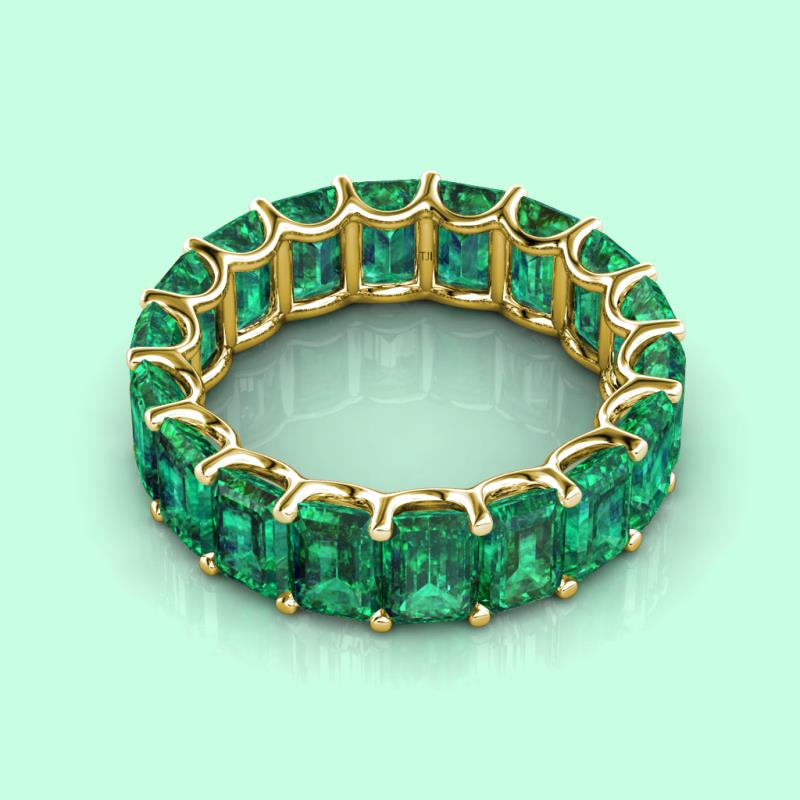***** I collaborated with Vijay to add a new eternity ring to the TriJewels collection. Victoria - check her out!!! Heirloom quality emeralds and diamonds with radiant clarity and color in a platinum trellis setting. Kudos to Vijay and his team. *****