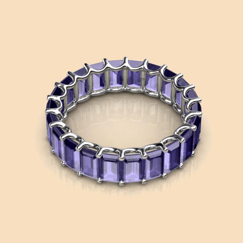 Luxurious combination of Elegance and Beauty, this heirloom quality Eternity Band has Emerald Cut Iolite that exude sheer brilliance and is highly flattering on the hand.