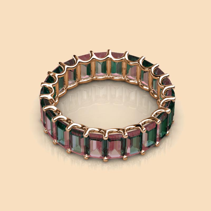 Emerald Cut (5x3 mm) Lab Created Alexandrite 7.77 ctw* Womens Eternity Ring Stackable 18K Rose Gold More Details ...
