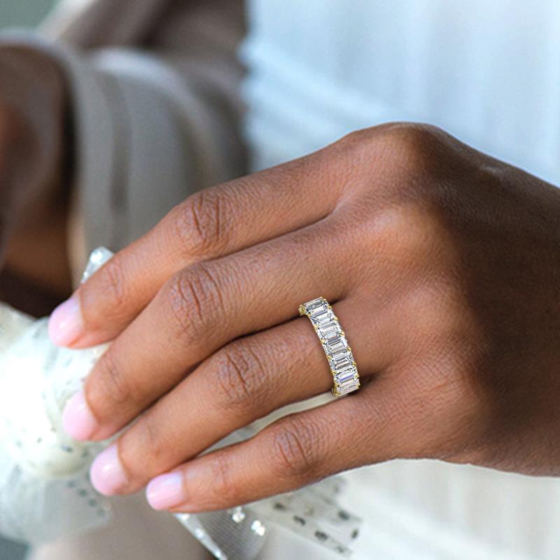 Emerald Cut (5x3 mm) Lab Grown Diamond 7.35 ctw* Womens Eternity Ring Stackable 10K Yellow Gold More Details ...