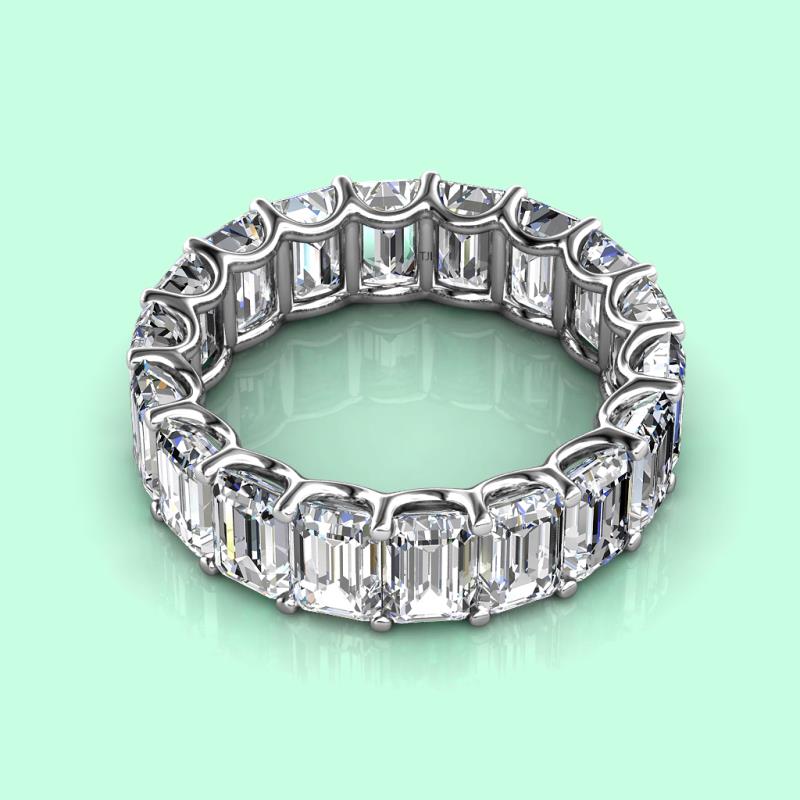 Luxurious combination of Elegance and Beauty, this heirloom quality Eternity Band has Emerald Cut Lab Grown Diamond that exude sheer brilliance and is highly flattering on the hand.