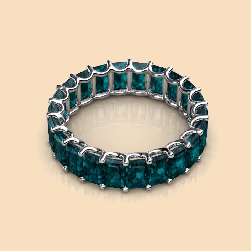 Luxurious combination of Elegance and Beauty, this heirloom quality Eternity Band has Emerald Cut London Blue Topaz that exude sheer brilliance and is highly flattering on the hand.
