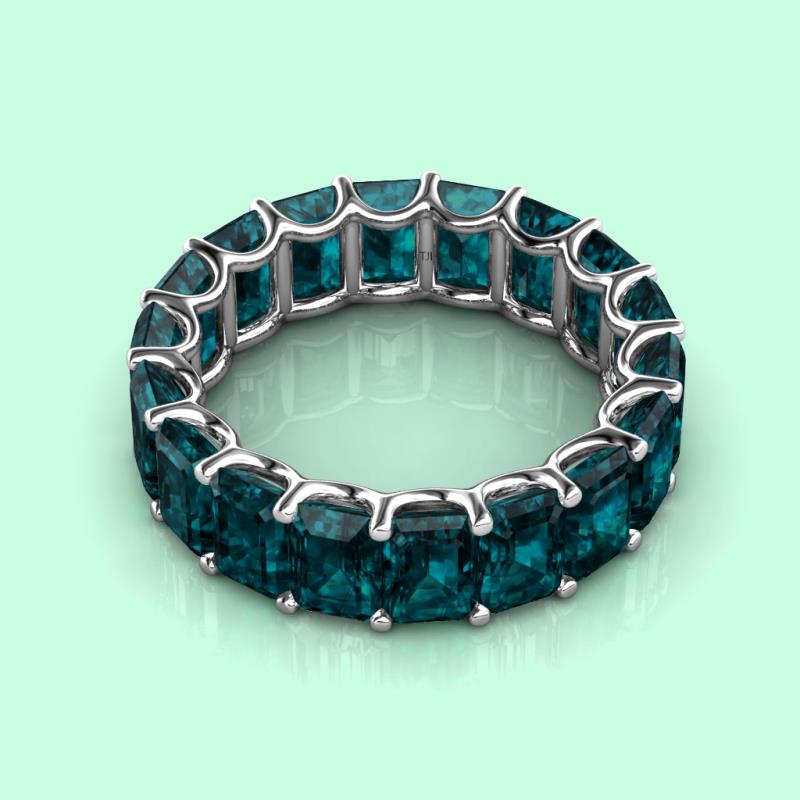 Luxurious combination of Elegance and Beauty, this heirloom quality Eternity Band has Emerald Cut London Blue Topaz that exude sheer brilliance and is highly flattering on the hand.