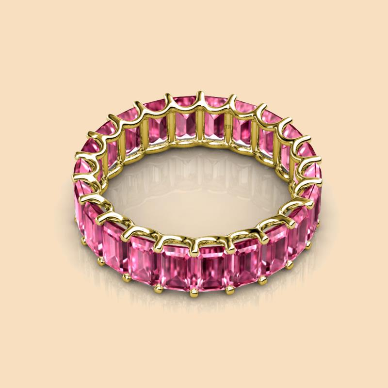 Emerald Cut (5x3 mm) Pink Tourmaline 7.35 ctw* Womens Eternity Ring Stackable 14K Yellow Gold More Details ...