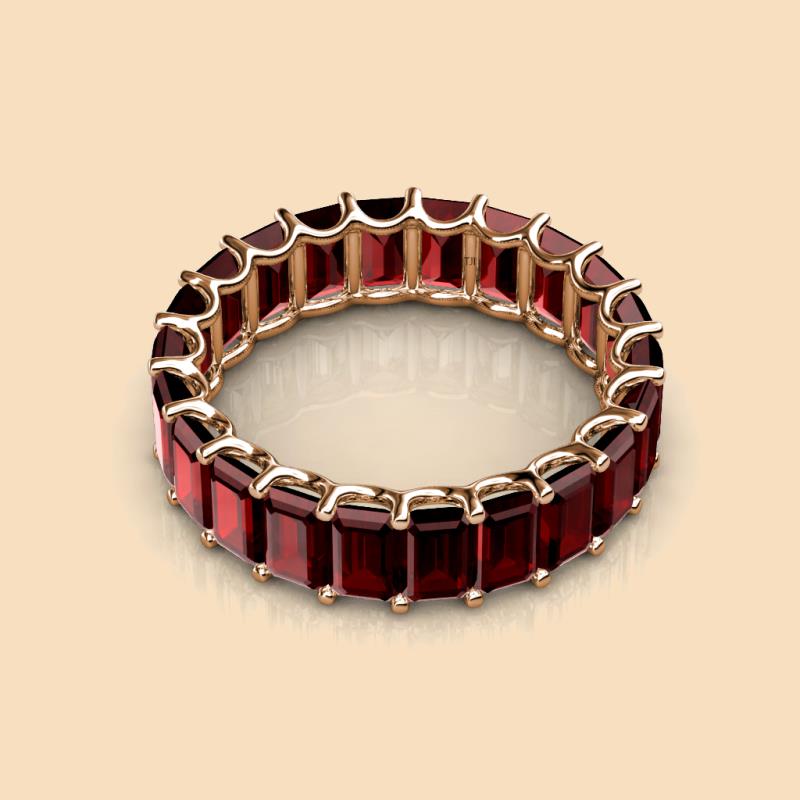 Luxurious combination of Elegance and Beauty, this heirloom quality Eternity Band has Emerald Cut Red Garnet that exude sheer brilliance and is highly flattering on the hand.