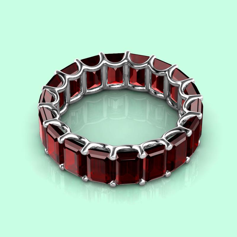 Luxurious combination of Elegance and Beauty, this heirloom quality Eternity Band has Emerald Cut Red Garnet that exude sheer brilliance and is highly flattering on the hand.