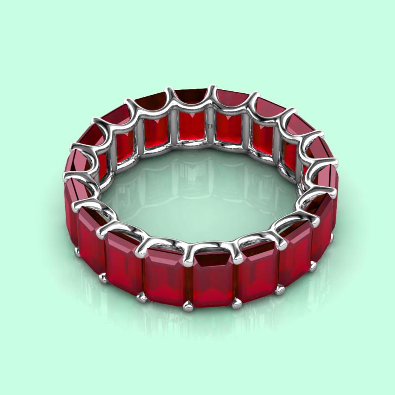 Emerald Cut (6x4 mm) Ruby 9.60 ctw* Womens Eternity Ring Stackable Sterling Silver More Details ...