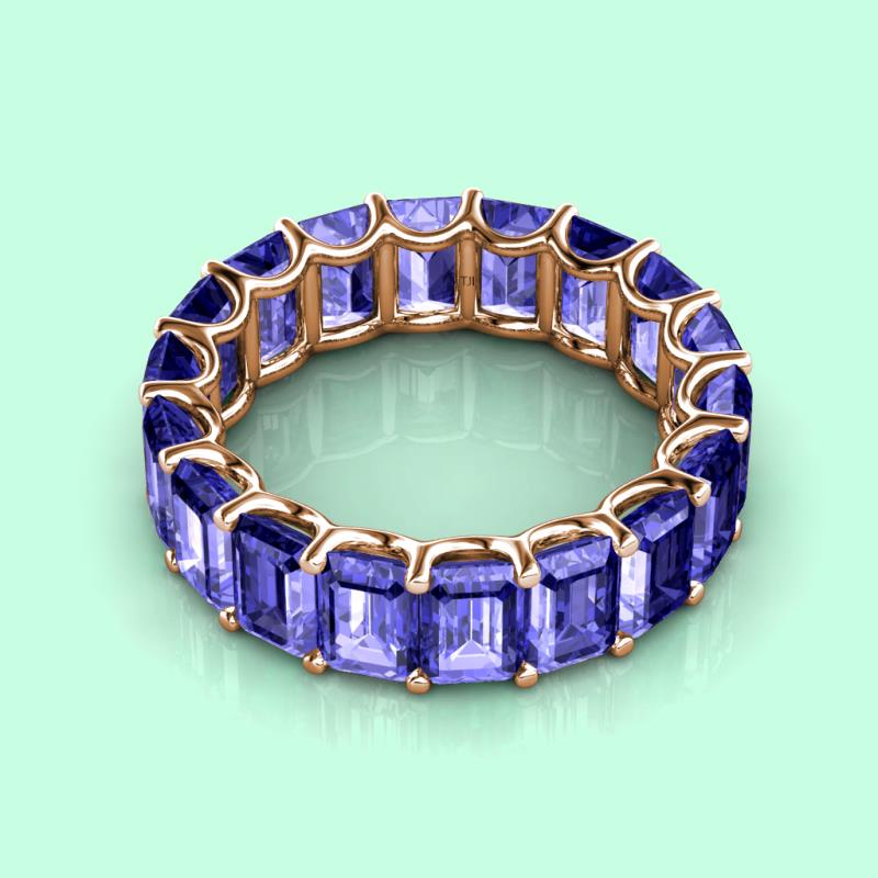Emerald Cut (6x4 mm) Tanzanite 9.60 ctw* Womens Eternity Ring Stackable 18K Rose Gold More Details ...