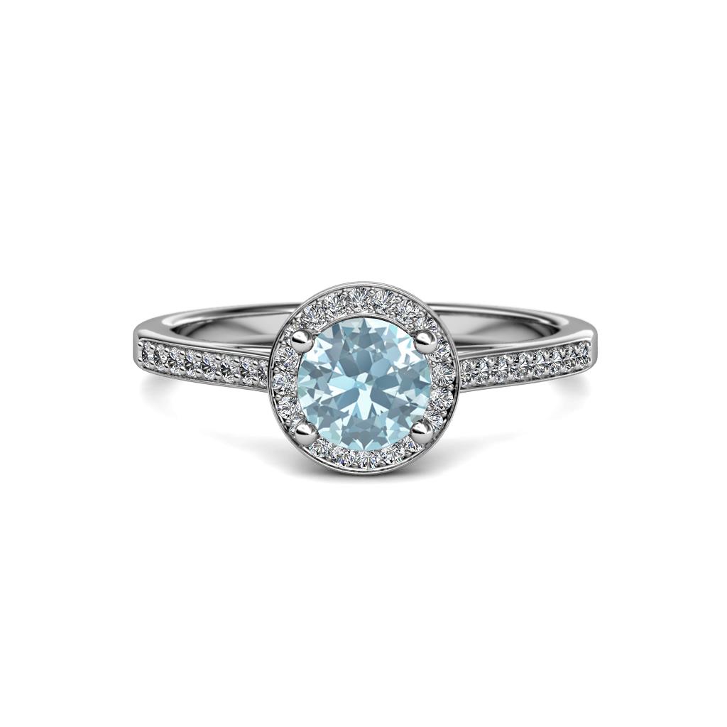 1 1/5 ctw Round Aquamarine and Diamond Womens Halo Engagement Ring 14K White Gold More Details ...