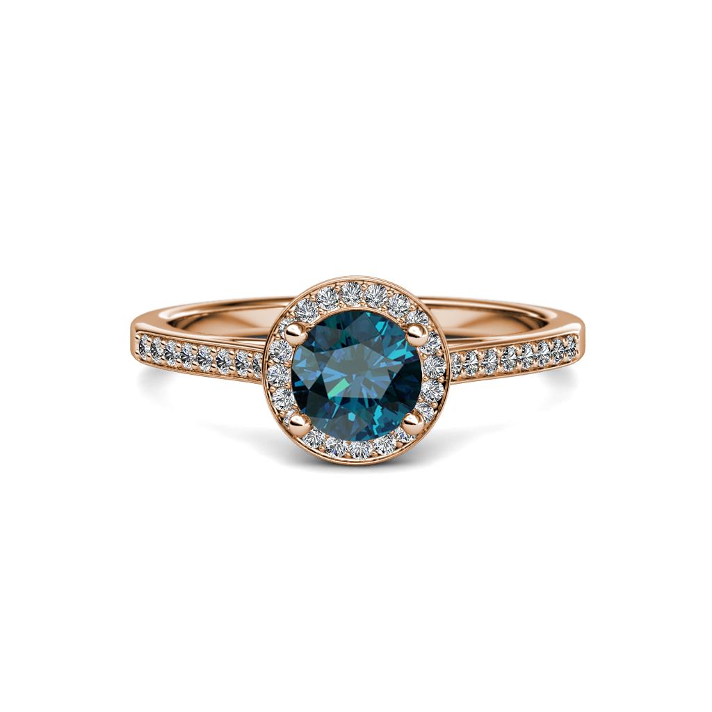 1 1/3 ctw Round Blue and White Diamond Womens Halo Engagement Ring 14K Rose Gold More Details ...