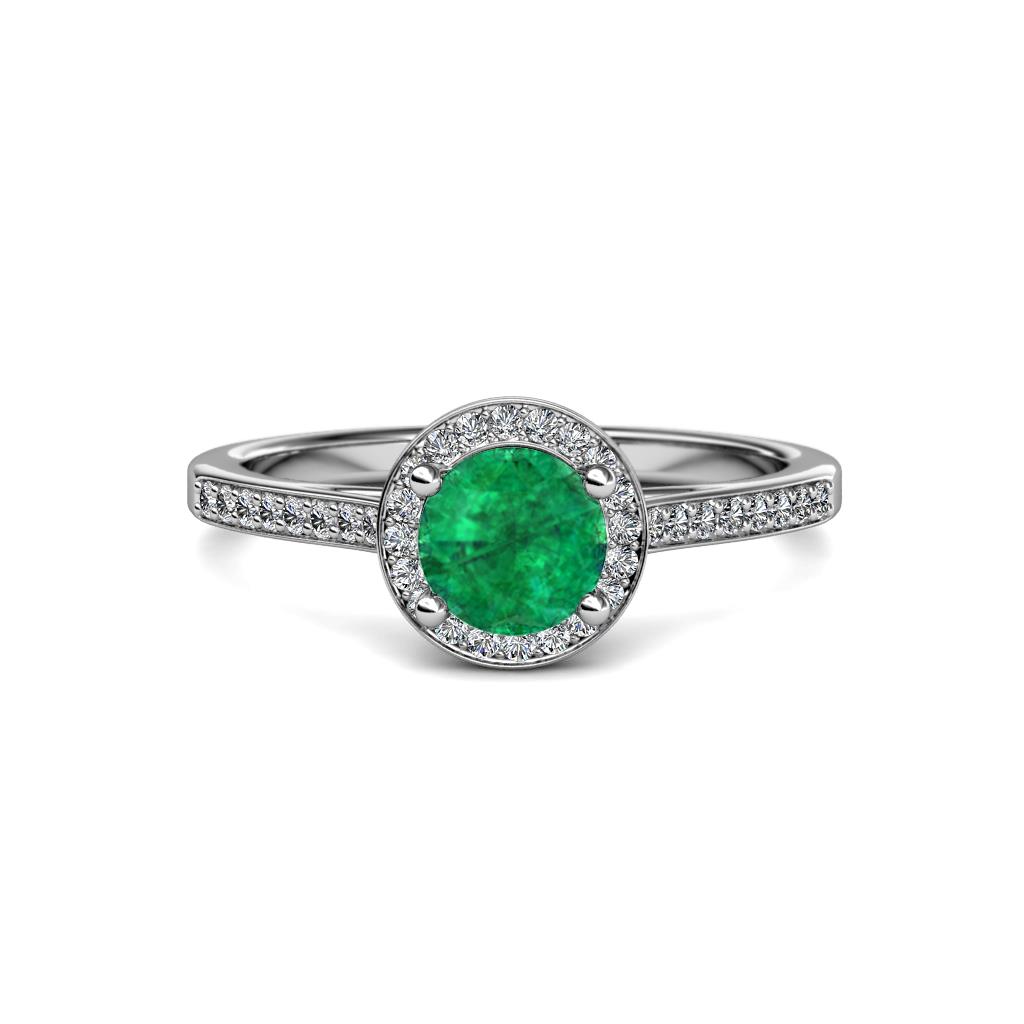 1 ctw Round Emerald and Diamond Womens Halo Engagement Ring 14K White Gold More Details ...