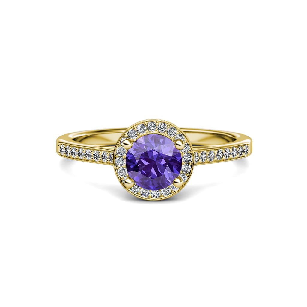 1 1/5 ctw Round Iolite and Diamond Womens Halo Engagement Ring 14K Yellow Gold More Details ...