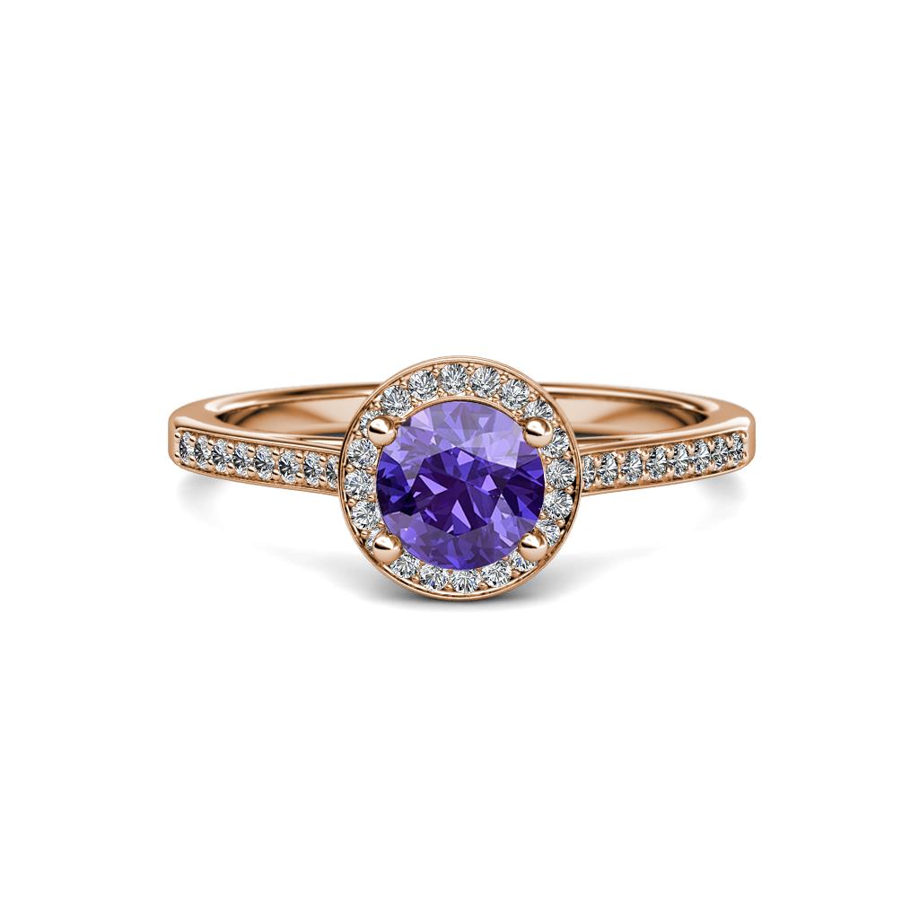 1 1/5 ctw Round Iolite and Diamond Womens Halo Engagement Ring 14K Rose Gold More Details ...