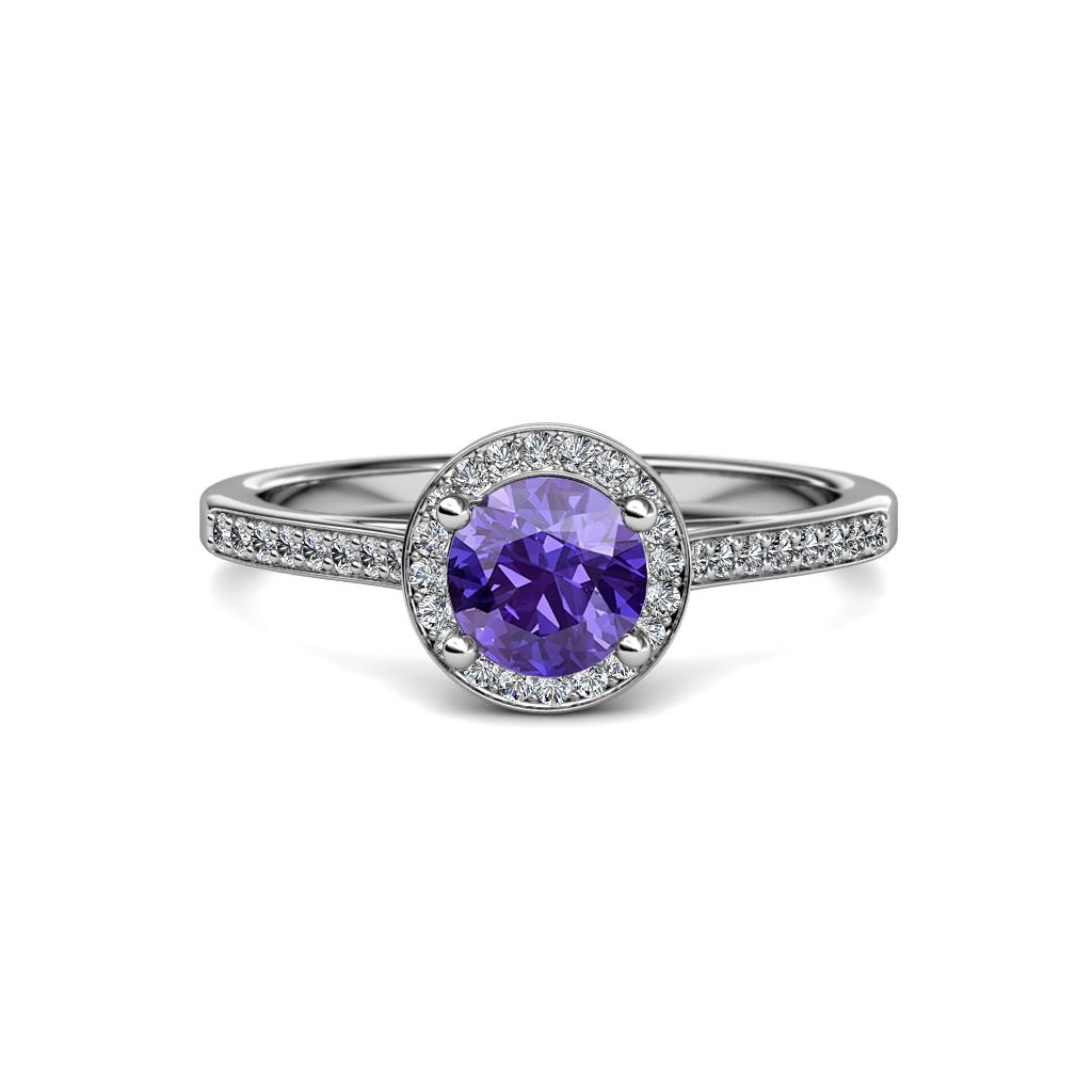 1 1/5 ctw Round Iolite and Diamond Womens Halo Engagement Ring 18K White Gold More Details ...