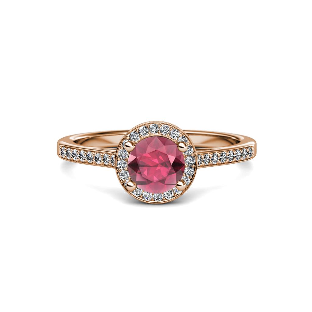 1 1/3 ctw Round Rhodolite Garnet and Diamond Womens Halo Engagement Ring 18K Rose Gold More Details ...